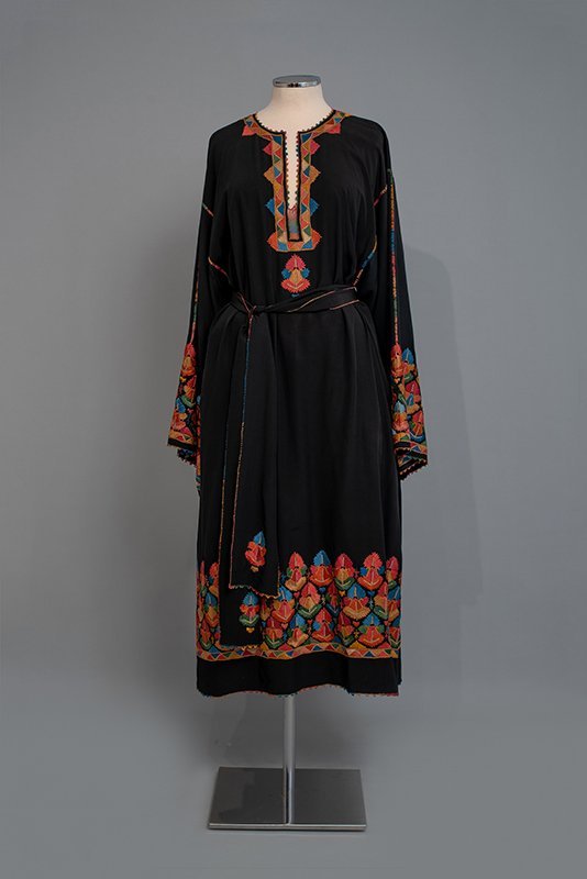 Black silk dress with embroidered floral patterns. Athens 1930s. Donated by Maria Zografou-Dounta