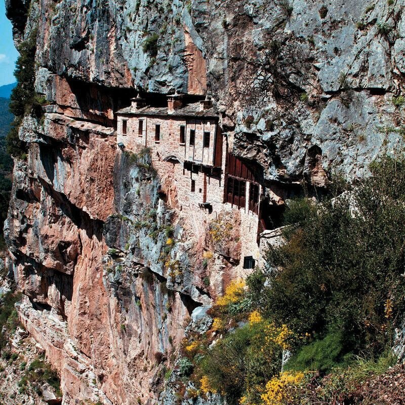 In the old days, the stone craftsmen from Pramanta, Sirako, Kalarites and the rest of the Tzoumerka villages would travel far and wide to build. They would build houses, temples, bridges and even palaces. Their craft was unrivaled. So much so, that the Tsar of Russia once called on them to build the stone bridges of the Trans-Siberian Railway. Naturally, the craftsmen would also apply their artistry to their own homes. Centuries later, these mountainous settlements of Epirus still stand as gems of folk architecture. Impressive mountain peaks, dense forests and small rushing streams which join to form the Arachthos river surrounds them. The National Park of Tzoumerka has great ecological value. We also find very old monasteries in the region, like the one of Kipina (1212 AD) which literally hangs over the void. It is tightly wedged into a steep rock.