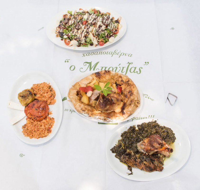 Traditional dishes at the Boutzas meat taverna in Pramanta.
