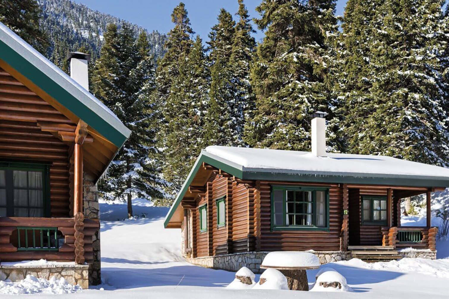 > There are several excellent accommodation options in Arachova and the surrounding area. One of them is the enchanting Elatos Resort and Spa located in a verdant area, at an altitude of 1,300 metres. It consists of 39 independent chalets in absolute harmony with the natural environment. It offers all modern comforts and a unique sense of hospitality and warmth.