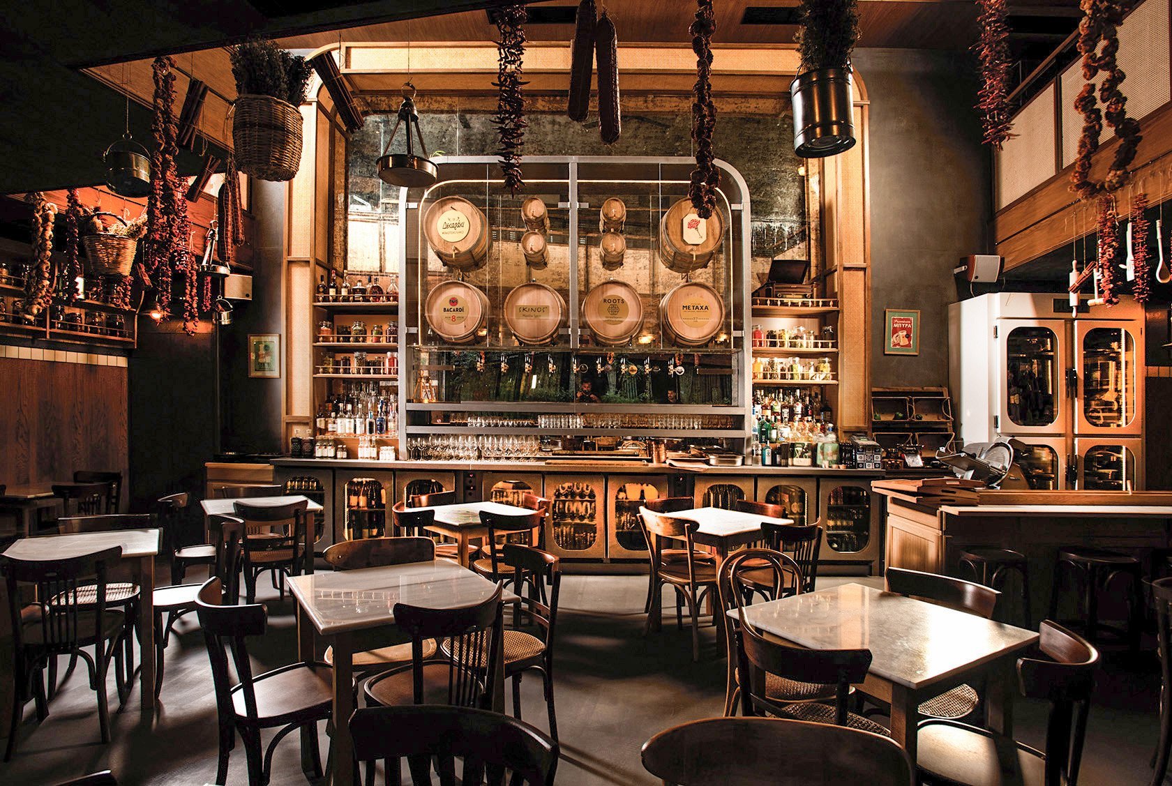 Another good option is Το Locali (Sarri 44, +30 210 3250673) meaning “local” or “one of us”. It popped up last summer in the Psiri vicinity taking over from an old and much loved open air cinema, and soon managed to make a name for itself – as early as the first week its yard was crammed with people. Even now in wintertime, you can enjoy the greenery outside whilst sitting by the stove, or indoors where the decoration is a cool rendition of Greekness, a game of coexistence between old and new. A cheerful, vibrant crowd eats and drinks in this sui generis Greek pub, chatting away next to old woven textiles and folklore tsolia figurines. Just above the bar, the cartoonist known as “The Rabbit Knows” has drawn the neighbourhood’s characteristic figures, proving that an ancient character and a rebetis can jointly oversee a bartender preparing an Old Fashioned cocktail with tsipouro. As for the dishes that emerge from the kitchen, they all incite a meze-type meal: meatballs and chips, small fried fish, open pies, orzo seafood…