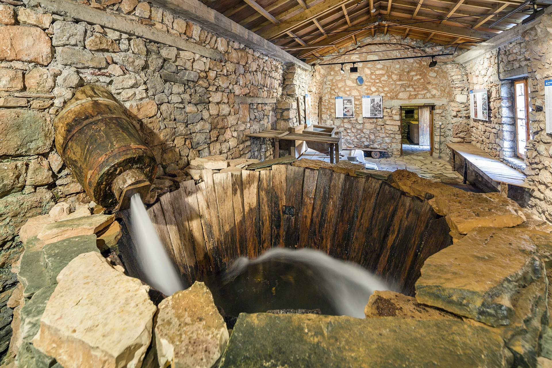 The Open Water Museum, a member of the Piraeus Bank Group Cultural Foundation Thematic Museums Network, is located at the historic Dimitsana right in the heart of the Peloponnese. The first workshops appeared in the 16th century at the Loussios river gorge, as the region’s gradual residential development began. Today, the buildings and water-powered equipment have been restored and faithfully reflect the lifestyle of those engaged in the gorge, with each of the restored buildings having a thematic section. In the first building, you will see a water mill and a flour mill, where you can place corn seeds and observe from up close how flour is milled and produced. Just outside, is a rakokazano cauldron that was placed outdoors for a few days after the grape pressing for the production of tsipouro. At the tanner’s two-storey house opposite, you will see the various stages of leather skin treatment. The cobbled path leads to a levelled plateau where a natural reservoir is formed, ending at the gunpowder mill. Gunpowder, a strong element of the region’s cultural identity, is kept alive in the memory and in the stories of its inhabitants.