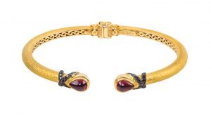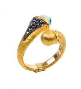 The Callas Collection offers fine artisan K-Craftsmanship and unique design characteristics that embody luxury and prestige. An ode to the emblematic soprano, brought to life through unique artistic creations featuring tahiti black pearls, black diamonds, Swiss blue topaz and semi-precious stones in Silk hammered 18K Yellow Gold. Callas Collection is the very essence of what “La Callas” represents: resilience, charisma, perfection.