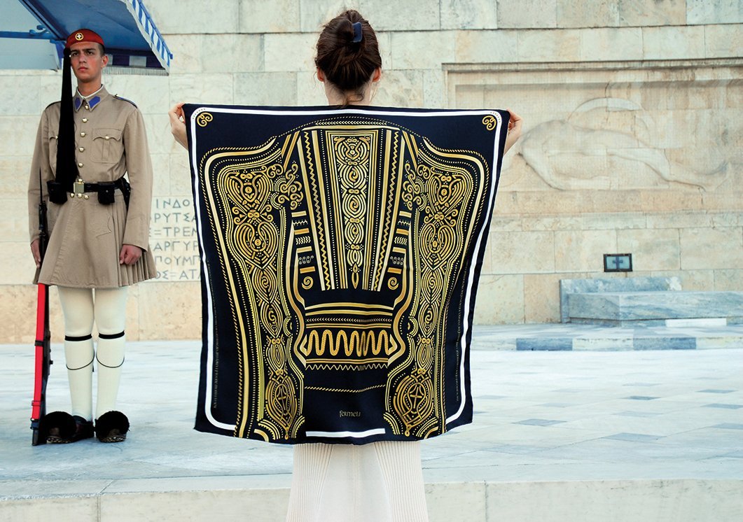 As she herself tells us: “The ideas come to me by chance; from a walk in a museum, or by reading a book”, and anyone wishing to create a tailor-made scarf can turn to Zournatzi with their own idea. In this case, the process would involve a lot of talk and several pencil drafts until the artwork is finalised and the colours filled in.