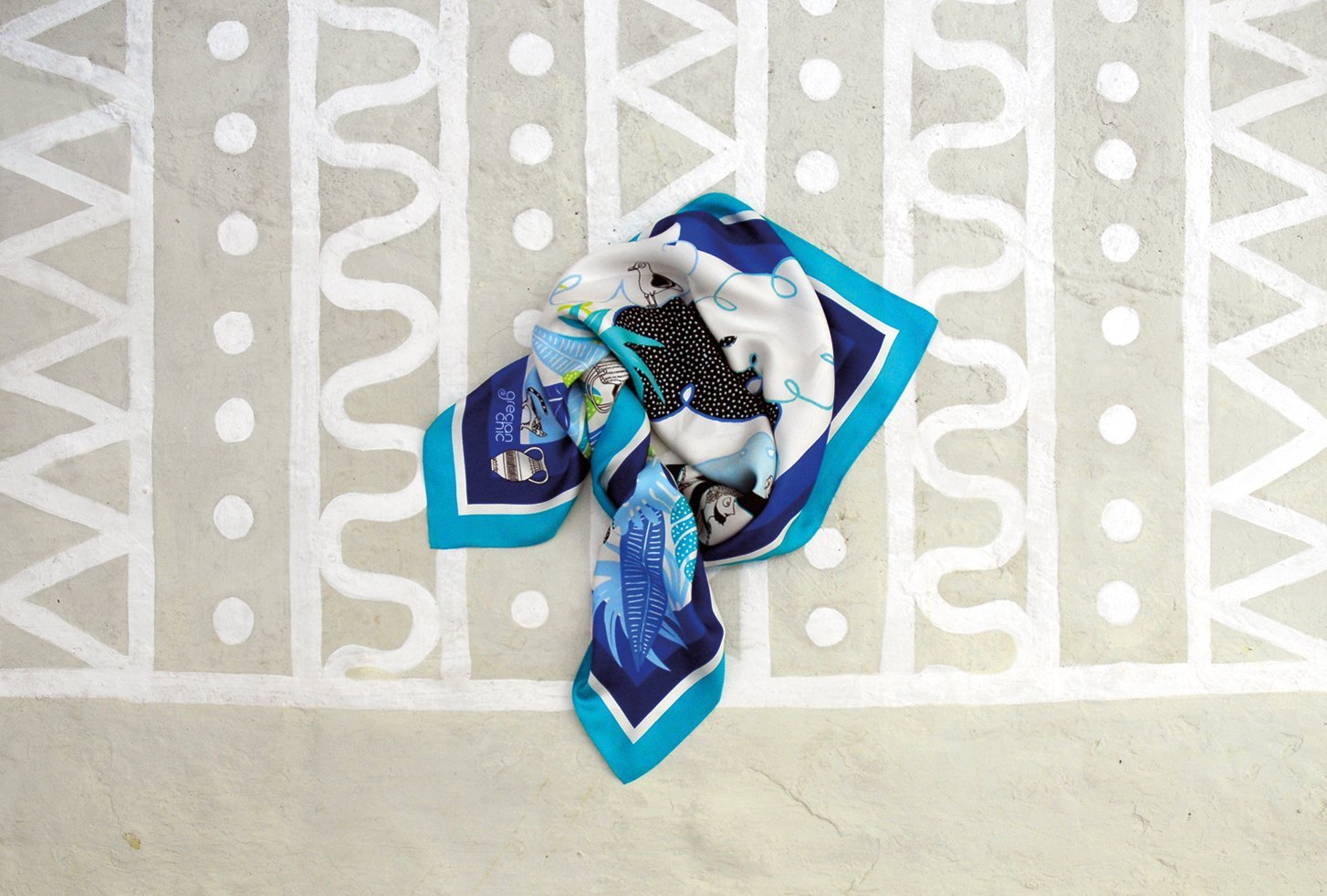 BOTH GRECIAN CHIC COLLECTIONS feature silk scarves, pocket squares and ribbons. All designs are hand drawn in pencil on paper to the finest detail before colour is added to bring them to life. The final drawings are digitally printed on 100% pure Twill silk and each scarf has a hand-rolled hemming finish. All products are made in England. www.grecianchic.gr